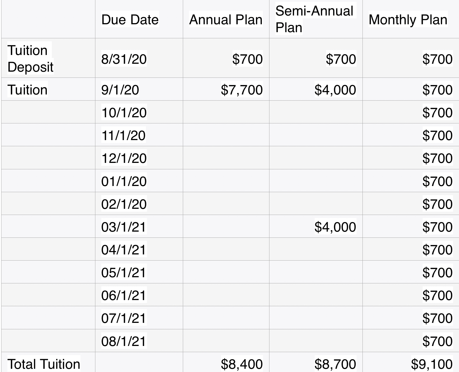 REAL Academy Prep 2020 - 2021: 2 Semi-Annual Payments